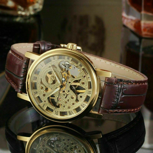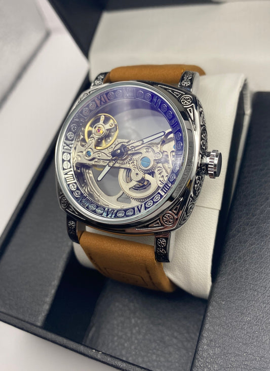 Automatic Watch Curved Vintage Mechanical Skeleton Wrist Watch Skeleton Leather Flywheel