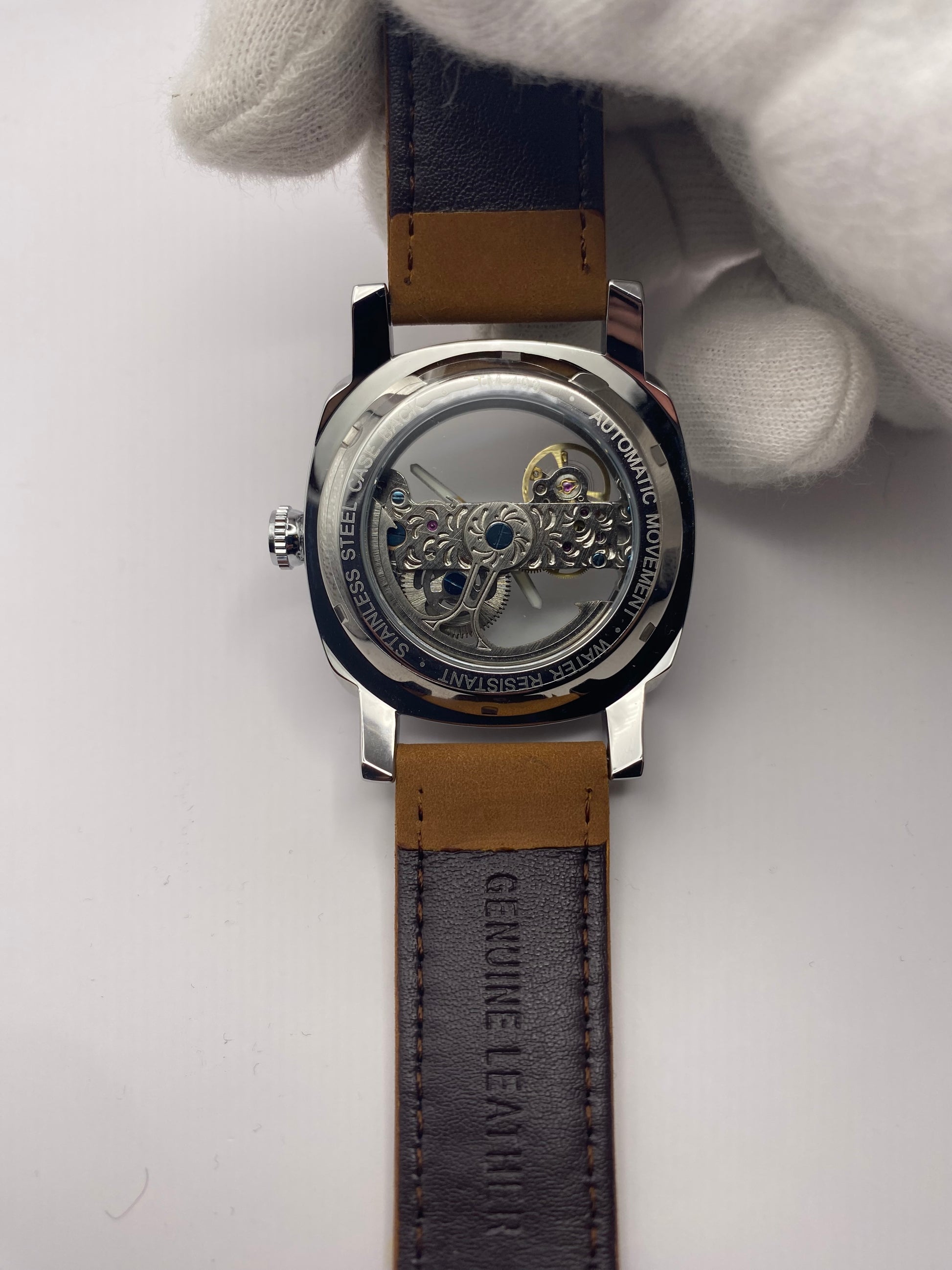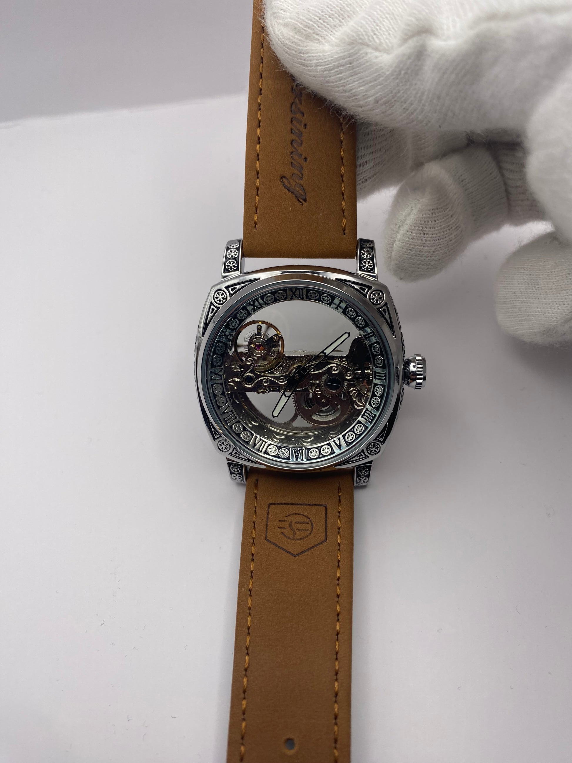 Automatic Watch Curved Vintage Mechanical Skeleton Wrist Watch Skeleton Leather Flywheel