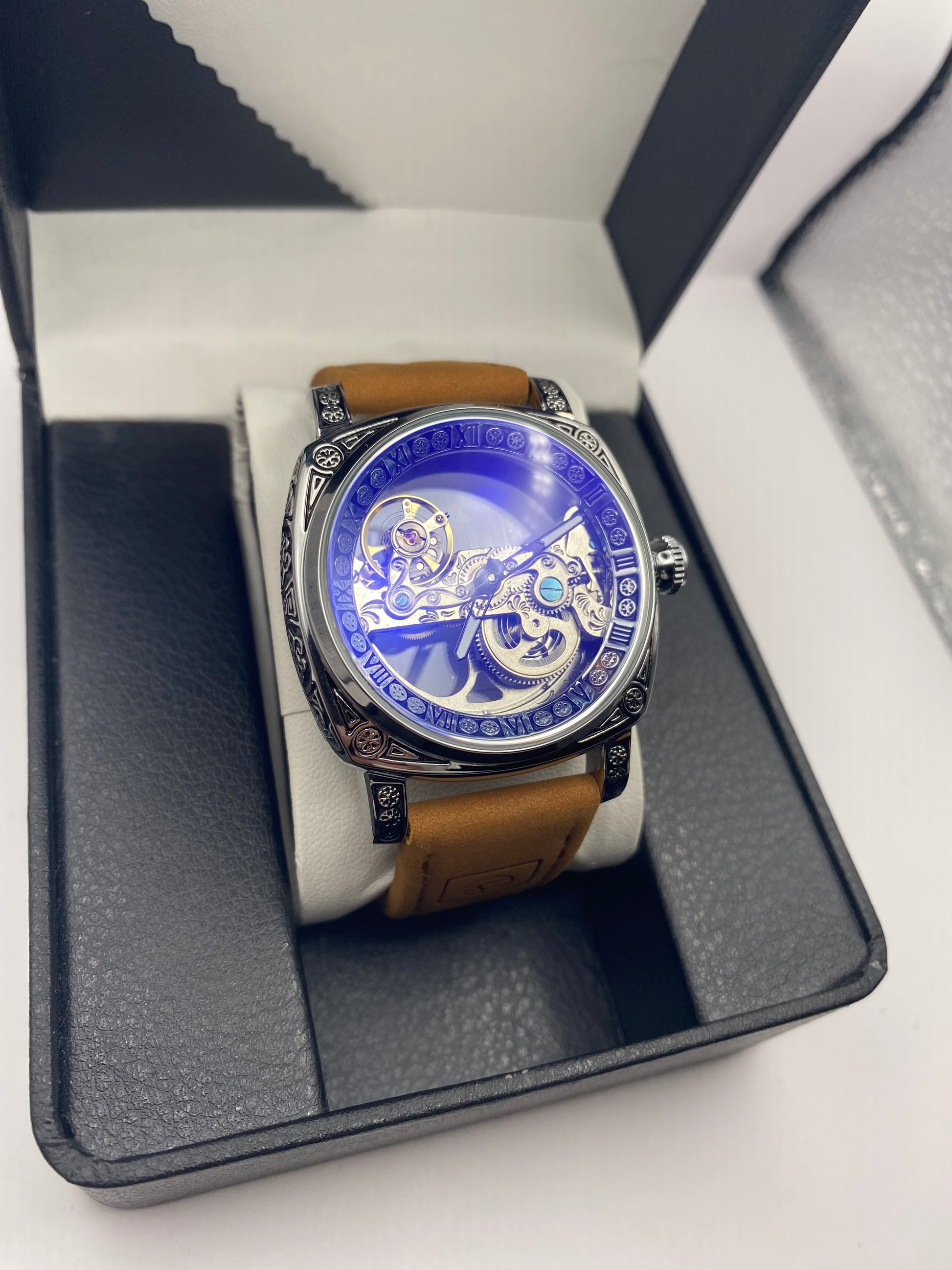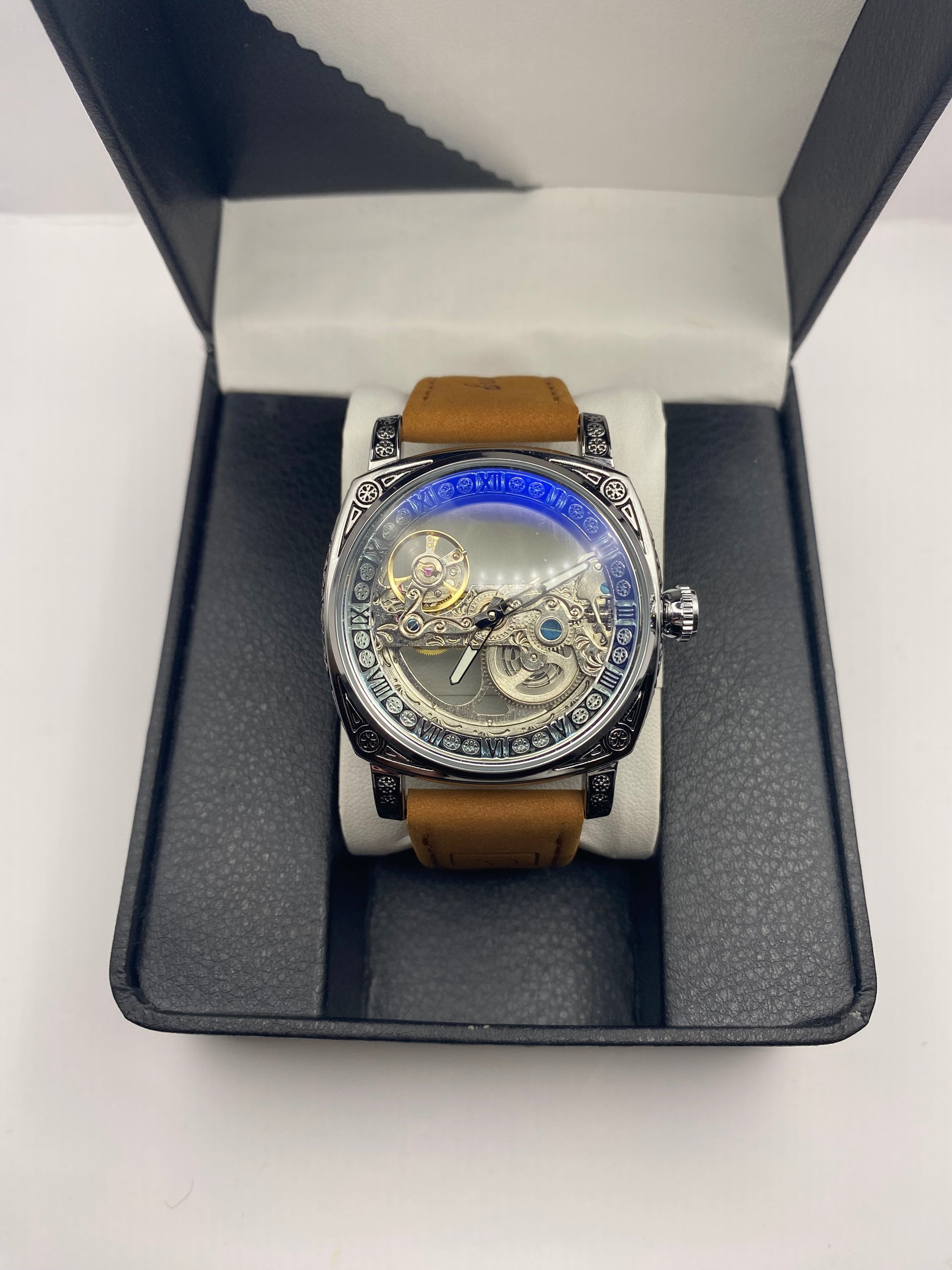 Unveil timeless sophistication with our Men's Leather Mechanical Watch, boasting impeccable craftsmanship and multifaceted features.