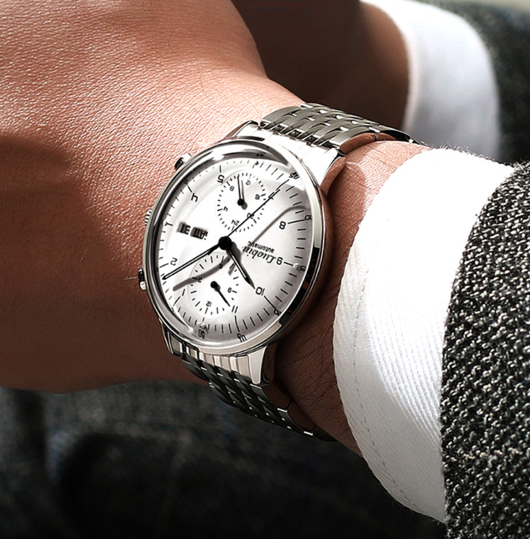 Men's Automatic Mechanical Wristwatch This time piece is a truly beautiful watch, made with your choice of either high quality leather or stainless steel, with a watch face that allows you to see the days, minutes, months and hours, it will truly allow you to impress, all for a reasonable price!
