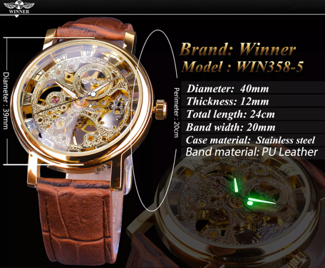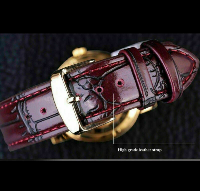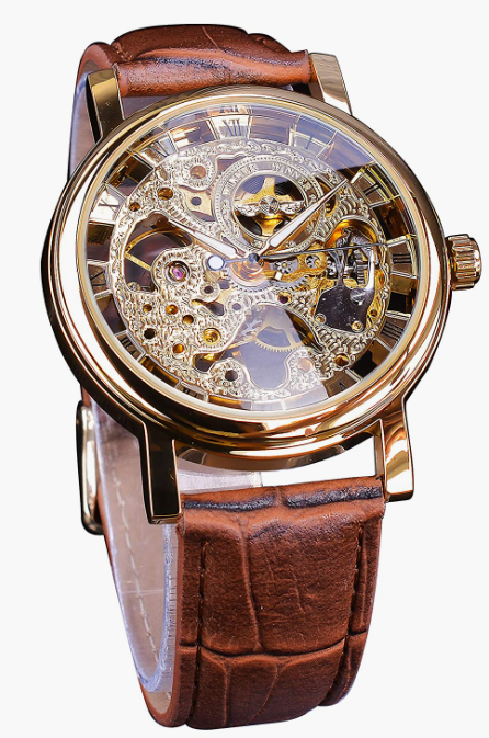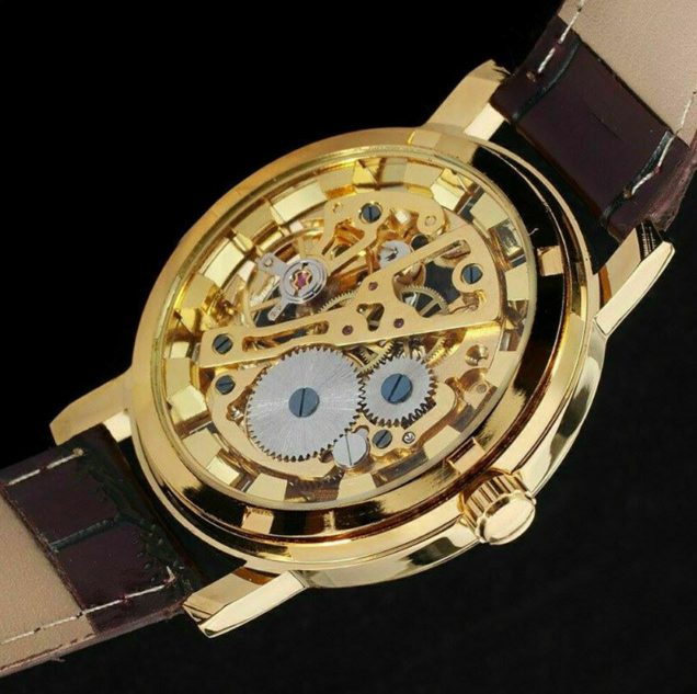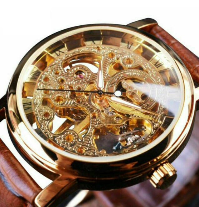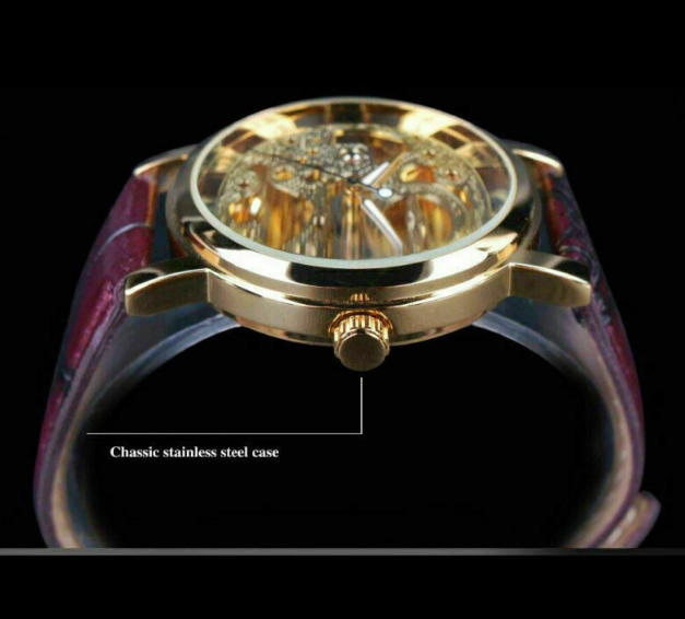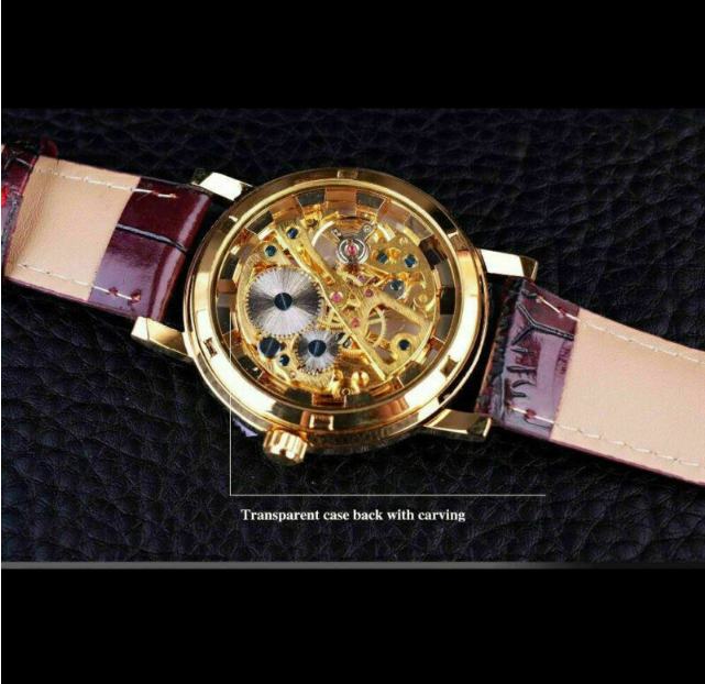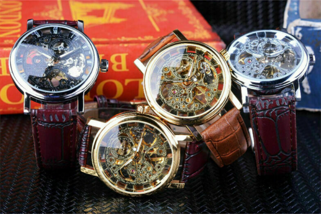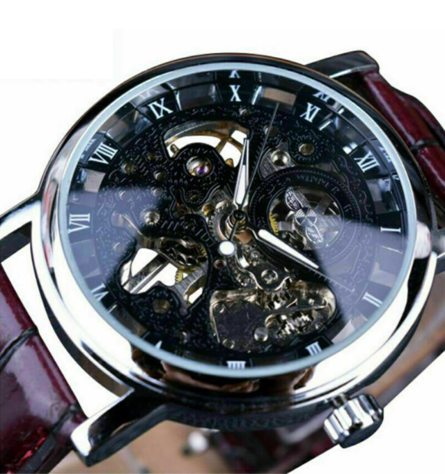 - Men's Stainless Steel Leather Skeleton Wristwatch