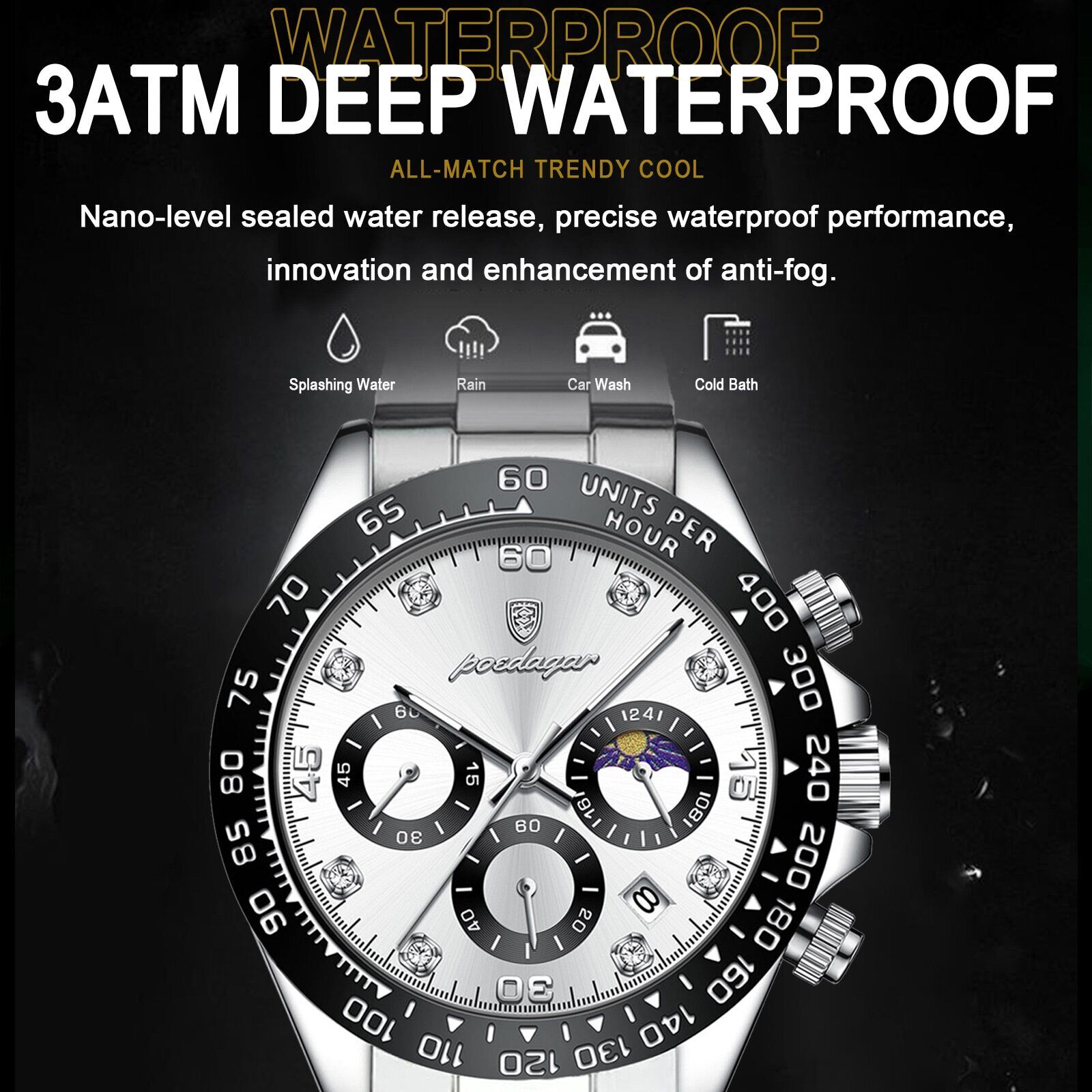 Powered by Japanese quartz movement, this watch guarantees exceptional accuracy, ensuring you're always punctual. Plus, with water resistance of up to 30 meters, you can confidently wear it in various settings without compromising its performance.
