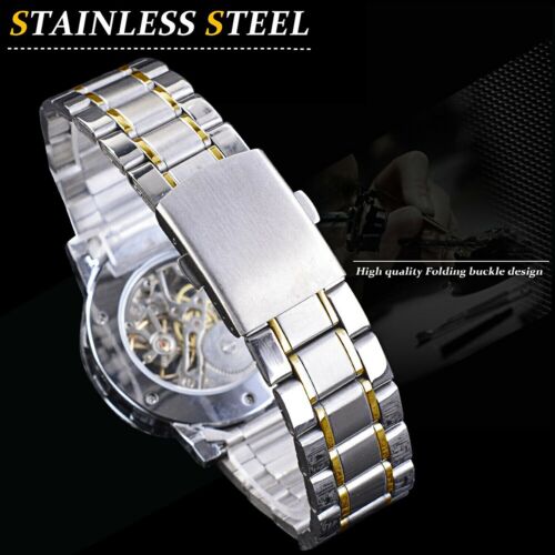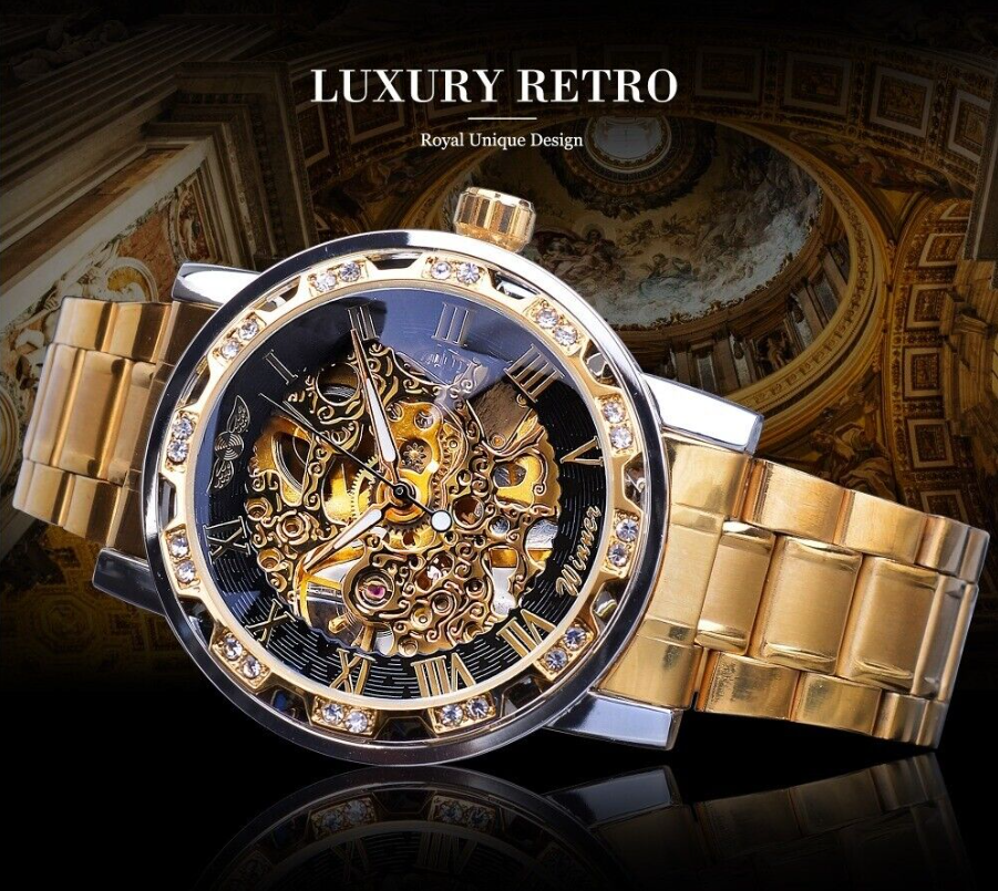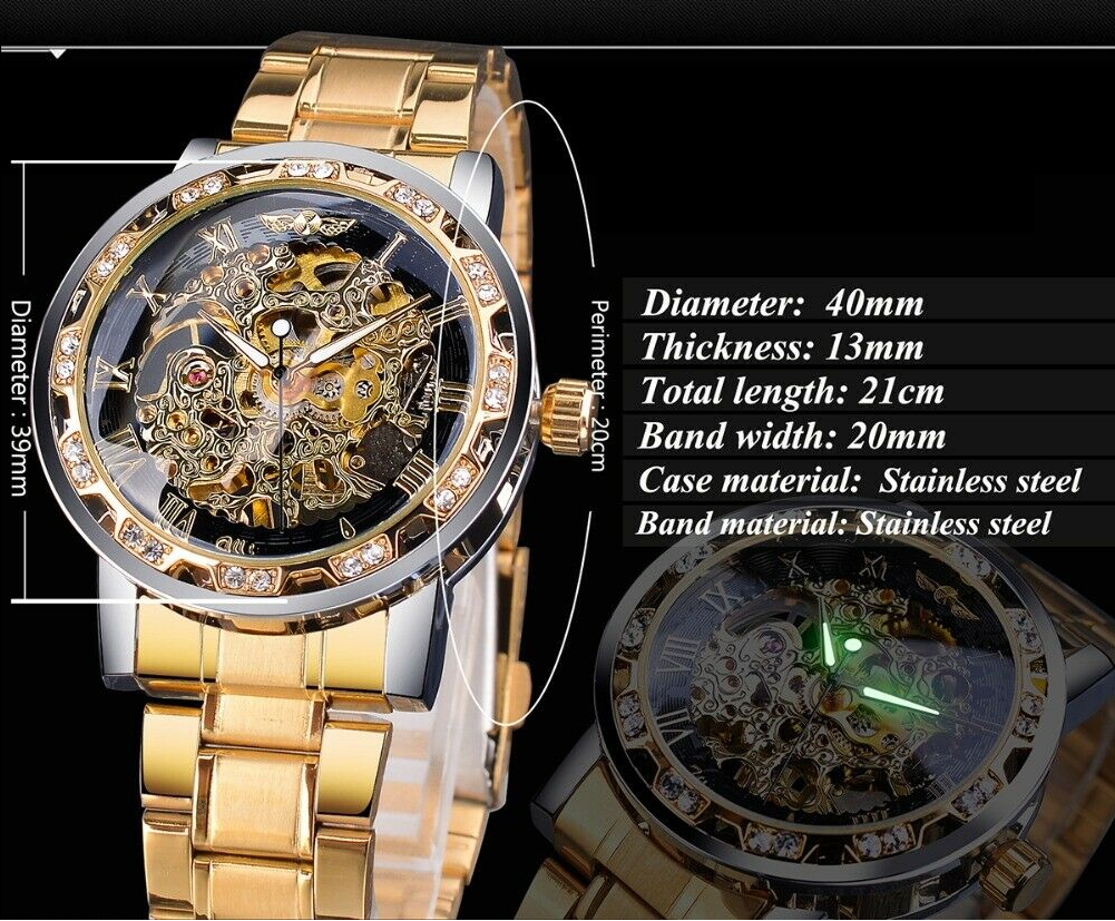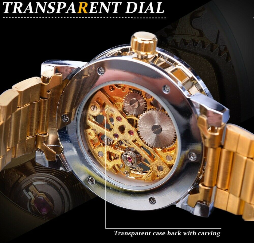 - Skeleton design allows you to see the inner workings of the front and back of the watch