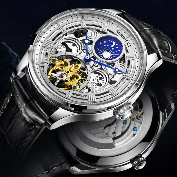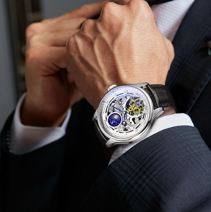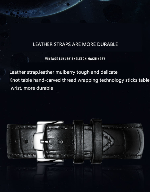 • Skeleton design allows you to see the inner workings of the front and back of the watch