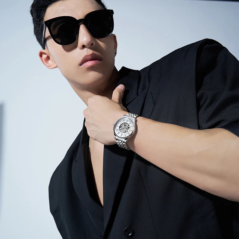 Men's Unique Mechanical Skeleton watch Dial Luxury Wristwatch Waterproof Automatic Stainlkess Steel