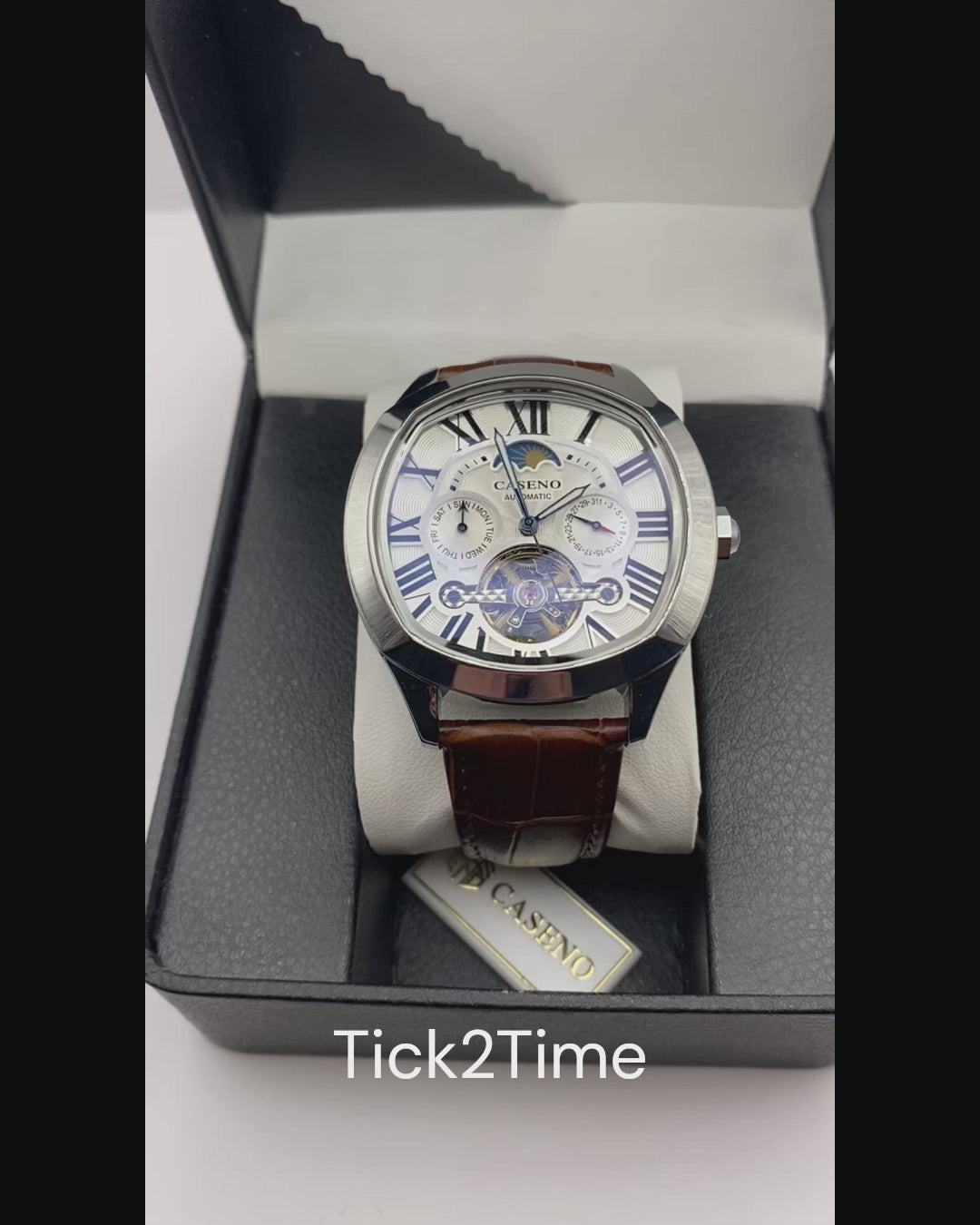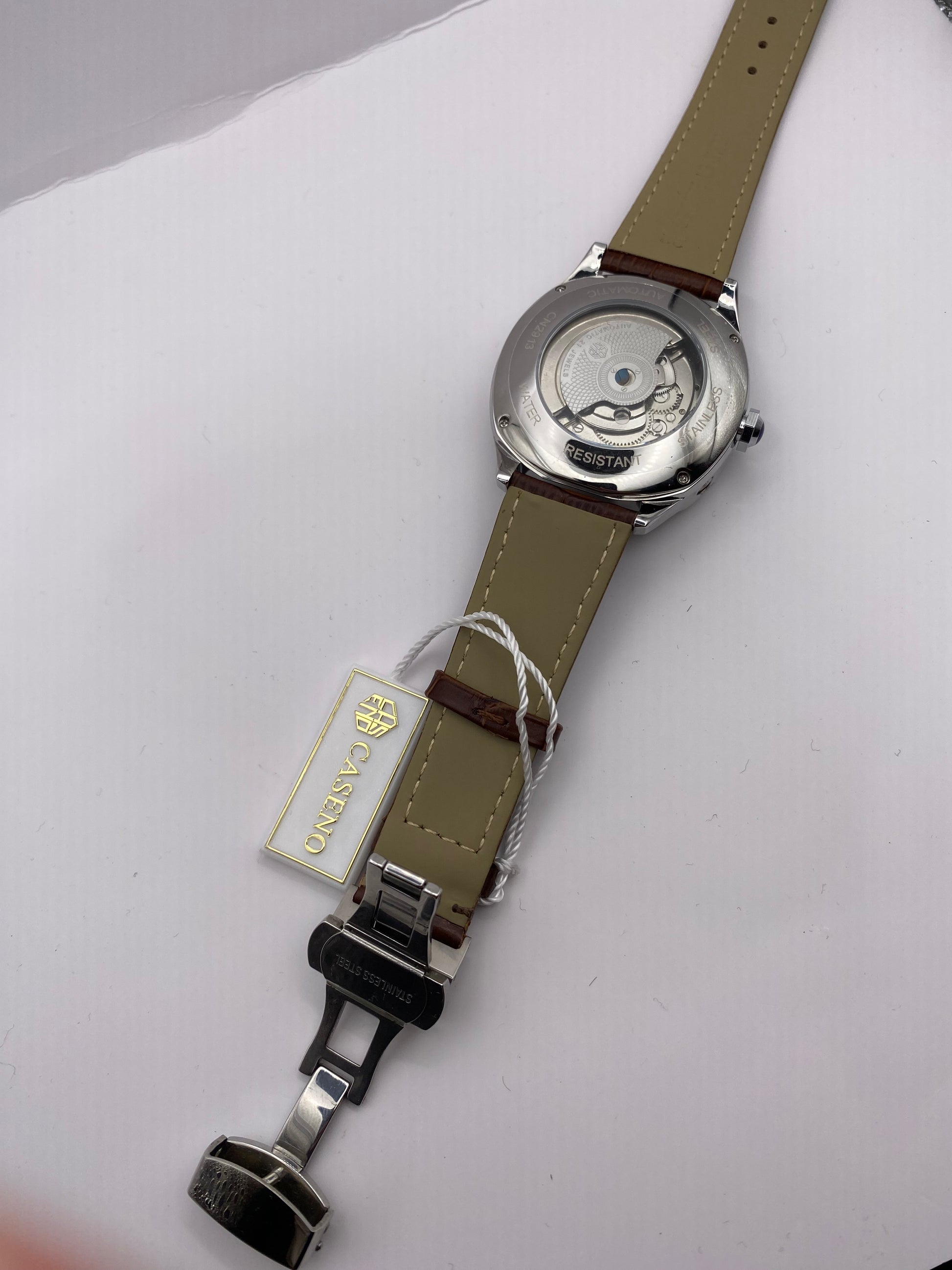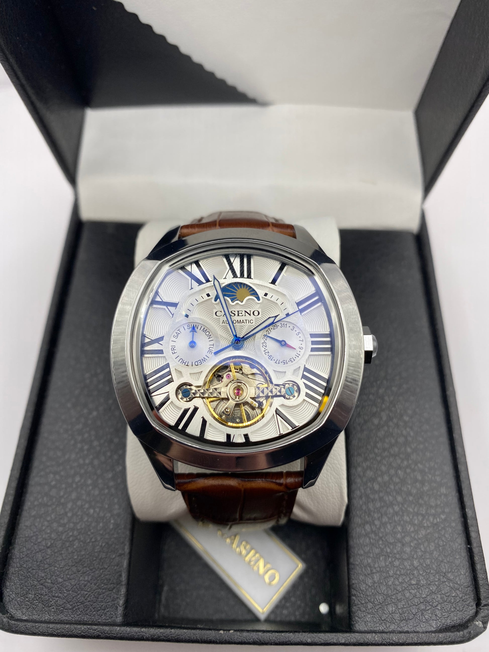 Explore the fascinating skeleton design, granting you an exclusive peek into the intricate inner workings of this sophisticated timepiece.
