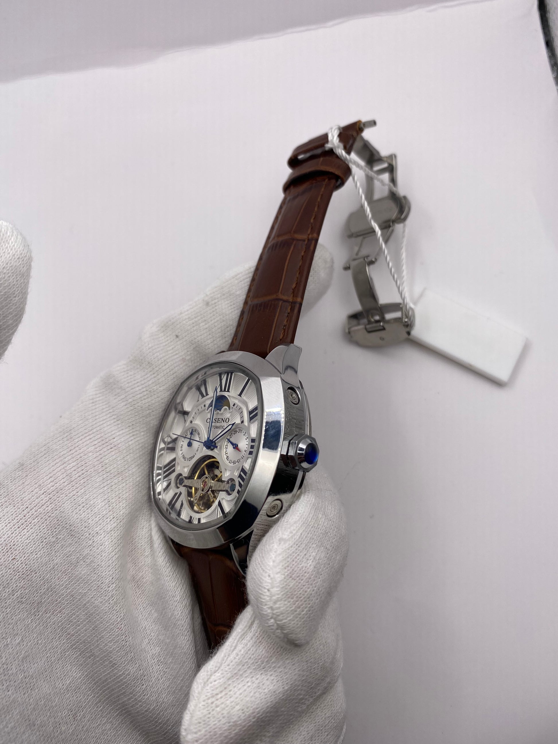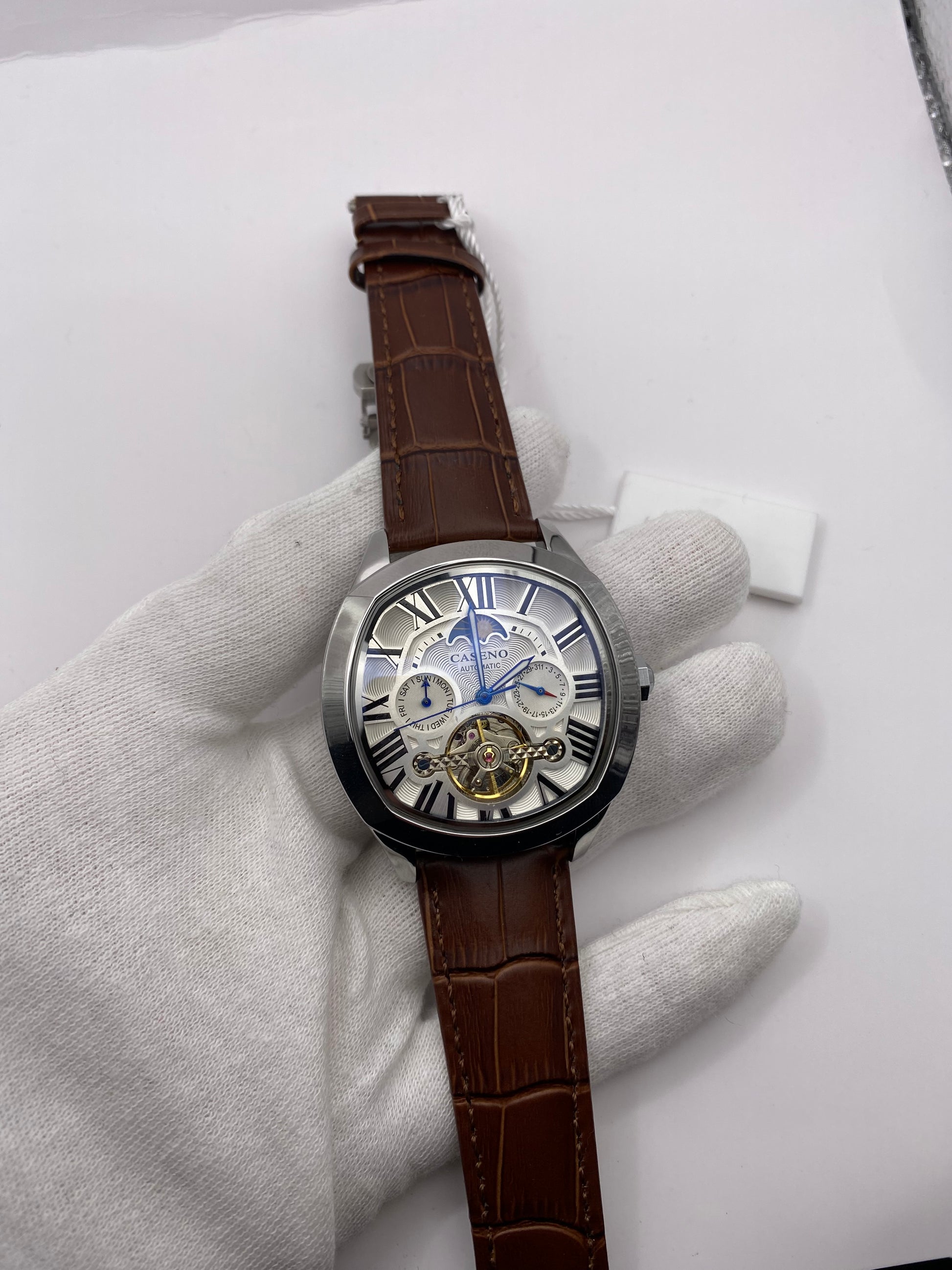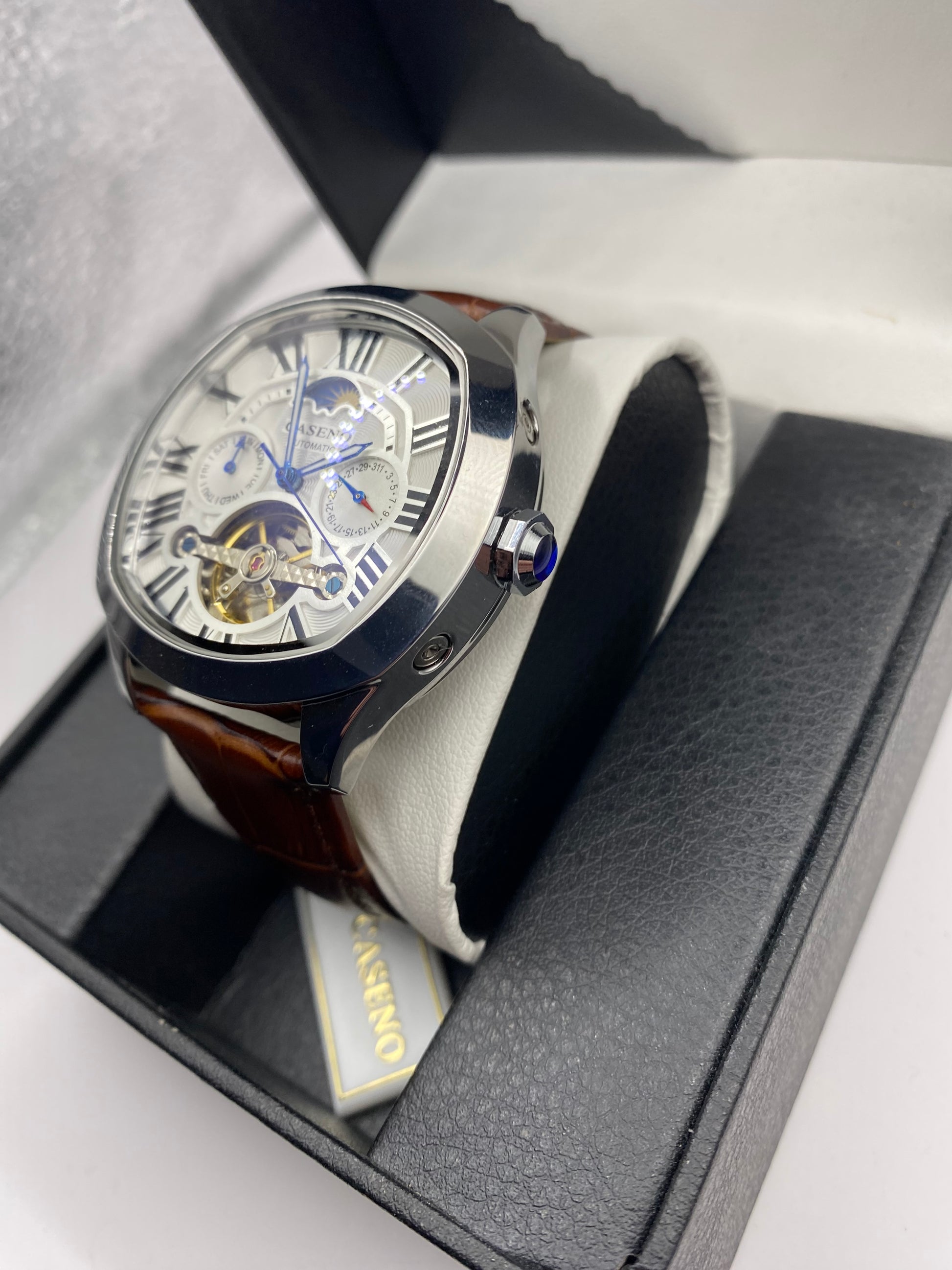 Elevate your wrist game with our Brand Mechanical Tourbillon Automatic Skeleton Wrist Watch—a timeless piece perfect for any occasion, boasting a sleek and professional aesthetic that demands attention.