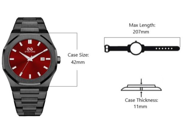 - Hassle-free customer service - Stretone offers a 60-day free return policy. If you have any questions, please contact us by clicking on the shop name below the shopping cart and we will provide you with a satisfactory solution within 24 hours. Note: The length of the watch and bracelet is about 207 mm and can be shortened with the included tool. All watches come with the gift box as seen in the photo, a link remover and a cleaning cloth.