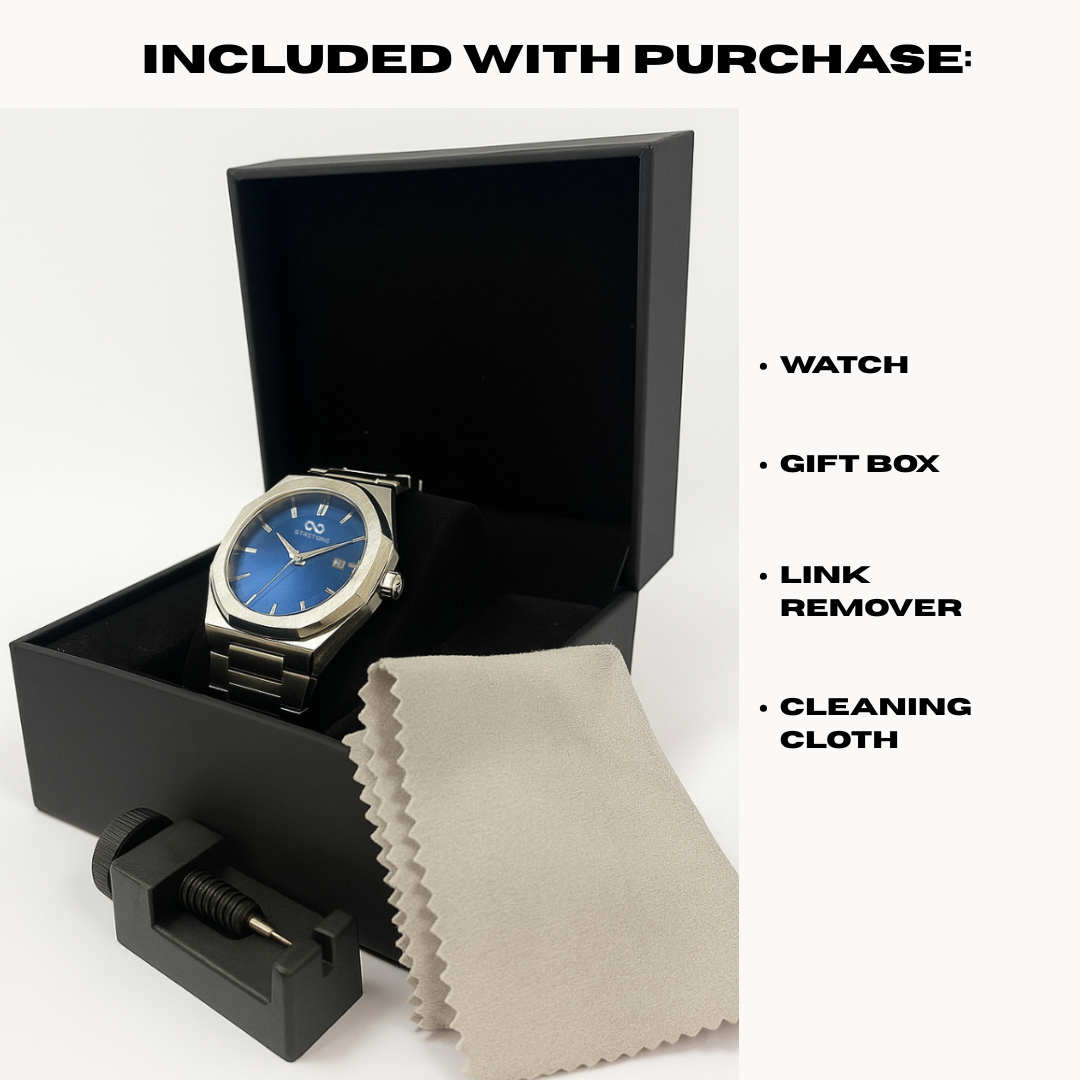 Perfect Gift Ready– Comes with a premium gift box, link remover, and cleaning cloth, making it ready to give straight out of the package. Paired with its 50ATM water resistance, screw-back case, and premium 316L/304 stainless steel build, this watch delivers luxury, durability, and practicality—everything you want in a high-quality gift that impresses immediately.
